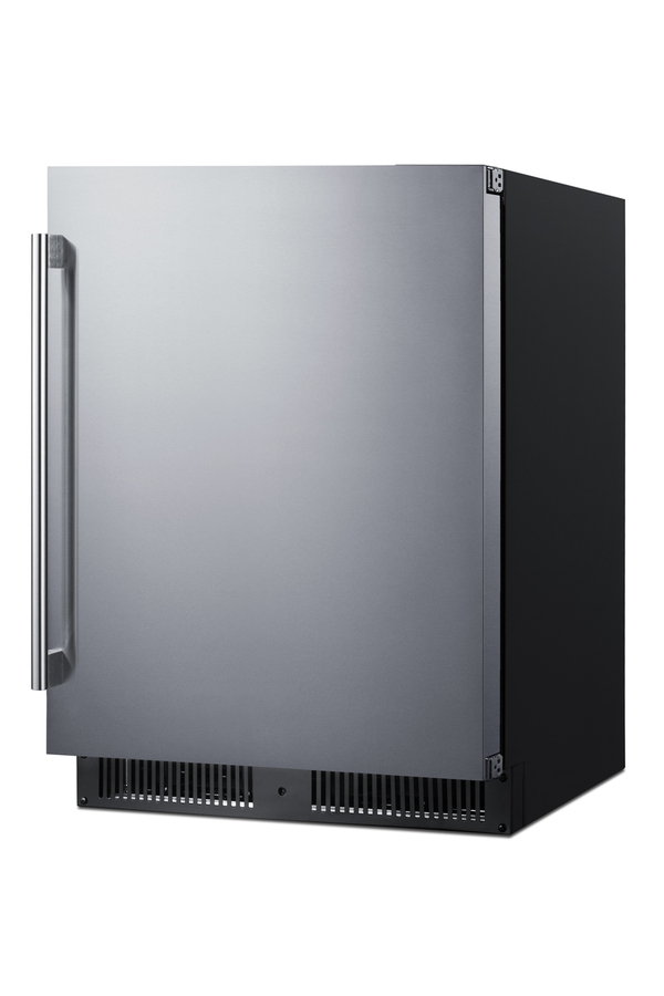 Summit manufactures the industry's largest selection of built-in appliances sized for use under lower ADA compliant counters, including frost-free freezers specially designed to match our popular ADA compliant refrigerators. Model ALFZ53 is a 24" wide all-freezer that can be paired with our AL54 all-refrigerator. Sized at just 32" high, it can easily be installed under an ADA compliant counter. This freezer features a jet black cabinet and user-reversible stainless steel door with a pro style handle. A factory-installed lock offers added security with two keys included. This unit comes with a front-breathing system that enables recessed built-in installation, while the fully finished exterior also allows freestanding use as needed. A right angle plug and sealed back design offers added space savings. Inside, the ALFZ53 utilizes frost-free operation with fan-forced cooling to ensure low maintenance and even temperature distribution. Recessed LED lighting offers an attractive yet efficient look inside the black interior. Three adjustable chrome shelves can be set at five different positions to best accommodate your storage needs. Additional user-friendly features include an open door alarm, high temperature alarm, and Sabbath mode setting that lets you disable some of the electrical elements during periods of observance. This unit features intuitive digital controls for easy temperature management. With its deluxe style and user-friendly features, this unit is the perfect choice for ADA compliant kitchens. Additional door finishes are available, including panel-ready, black stainless steel, and our new vibrant colors. Browse the full selection to explore your options. NOTE: Actual product details may vary slightly from pictured product