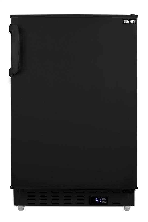 Summit Appliance offers a quality selection of 20" wide built-in undercounter all-refrigerators designed for installation under lower ADA compliant counters, with advanced features for user convenience. The ALR47B is sized at 32" high to fit under lower counters complying with ADA guidelines for accessibility. The fully finished textured black cabinet allows freestanding use, while the front-breathing system means this unit can be built-in with minimum clearance. The user-reversible door is 3" thick for efficient insulation, with a handle included for added convenience. This unit comes with a right angle cord to allow for easier placement without added depth. A digital thermostat, located in the kickplate, makes for easy temperature management with a readout in Fahrenheit or Celsius. Inside, the ALR47B features an all-white interior for easy cleaning and viewing of contents. An LED light located toward the front of the unit attractively illuminates the interior when the door opens. Automatic defrost operation ensures minimal user maintenance, with an internal fan to help ensure even cooling throughout the 3.53 cu.ft. interior. Three adjustable glass shelves offer optimal storage options for large and small items, while a pull-out crisper drawer provides storage for fruits and vegetables. Three removable door racks accommodate additional storage as needed. The user-set high and low-temperature alarms provide added security should the temperature go beyond the setpoint, while the open door alarm sounds if the door is ajar over one minute for added peace-of-mind. These alarms can be disabled depending on your needs. Sized at just 20" wide, the ALR47B is the perfect addition for space-challenged environments seeking dependable freezer options in a durable design. For a complete set, pair this unit with the matching ALFZ37B all-freezer. Additional choices in stainless steel and panel-ready styles are available.