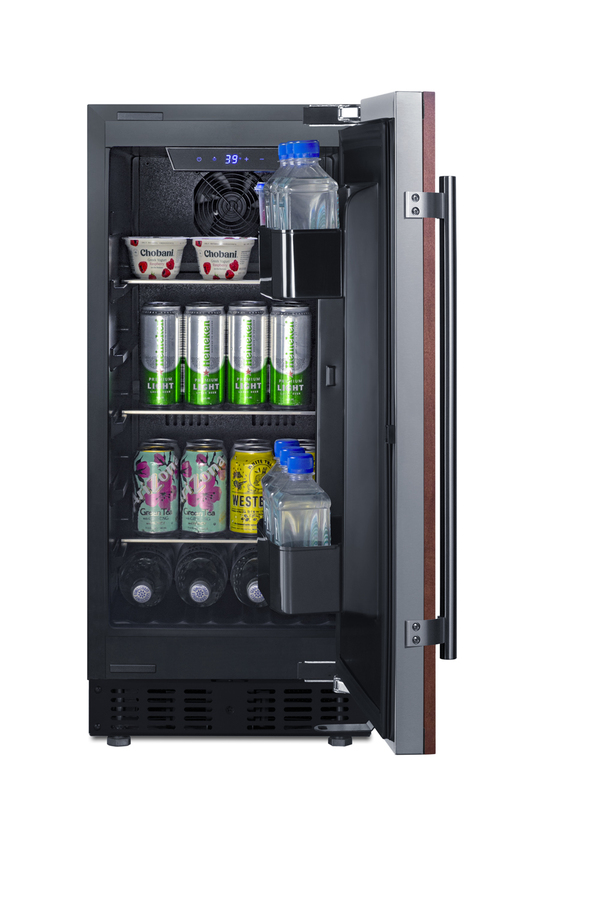Summit's selection of built-in undercounter refrigeration includes uniquely sized 15" wide units for a slim fit with user-friendly convenience. The FF1532BIF is a frost-free all-refrigerator in a slim 15" width. The front-breathing system allows built-in installation, while the fully finished black cabinet also allows freestanding use. We include a 2-piece bracket kit that allows easy installation of overlay panels over the stainless steel door to create a custom look that can blend into your existing cabinetry design. The user-reversible door swing allows easy adjustment as needed. A factory-installed lock is located in the kickplate. Inside, the FF1532BIF includes adjustable glass shelves for easy storage. Two door shelves are perfect for holding beverages and condiments, while the floor is specially slotted to store wine bottles. LED lighting provides an attractive presentation inside the 3 cu.ft. interior. The digital thermostat features a readout in Celsius or Fahrenheit for easy and intuitive temperature control. With ideal dimensions and advanced features, the FF1532BIF is the perfect choice for unique kitchen spaces. This unit can be paired with the matching SCFF1533BIF all-freezer as a side-by-side set or combined with our StackRack15.