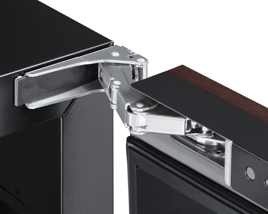 European style articulating door hinge and 2-piece bracket kit allow easy installation of custom door trim panels to match adjacent cabinetry; recommended panel dimensions: 3/4" thickness at 29 7/8" H x 14 5/8" W