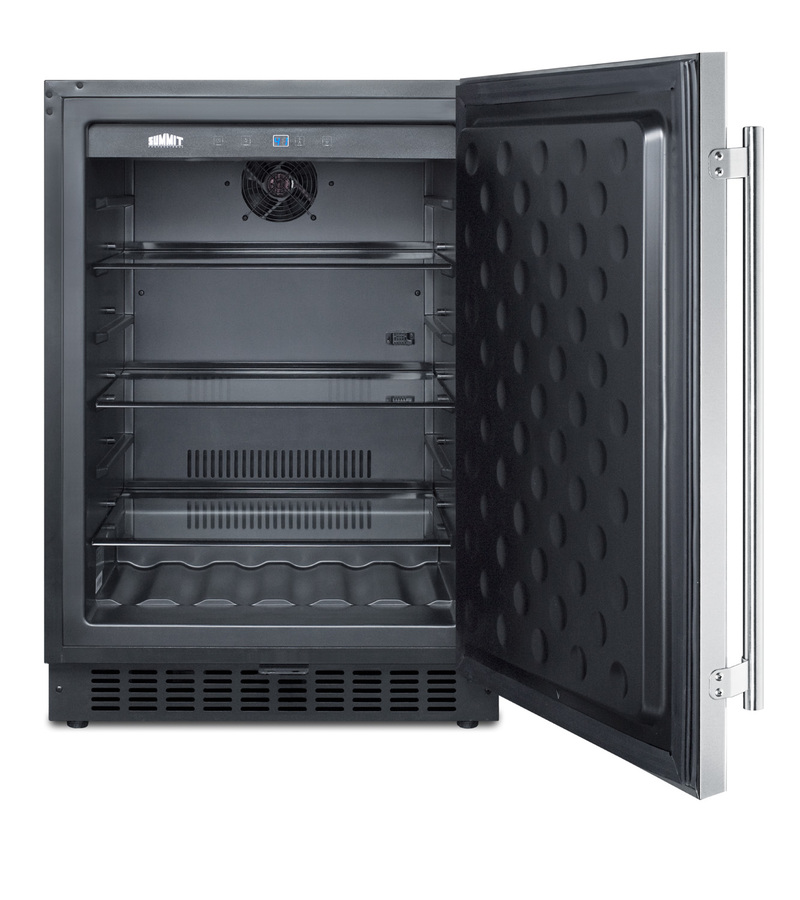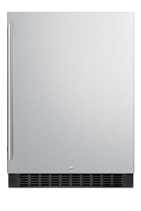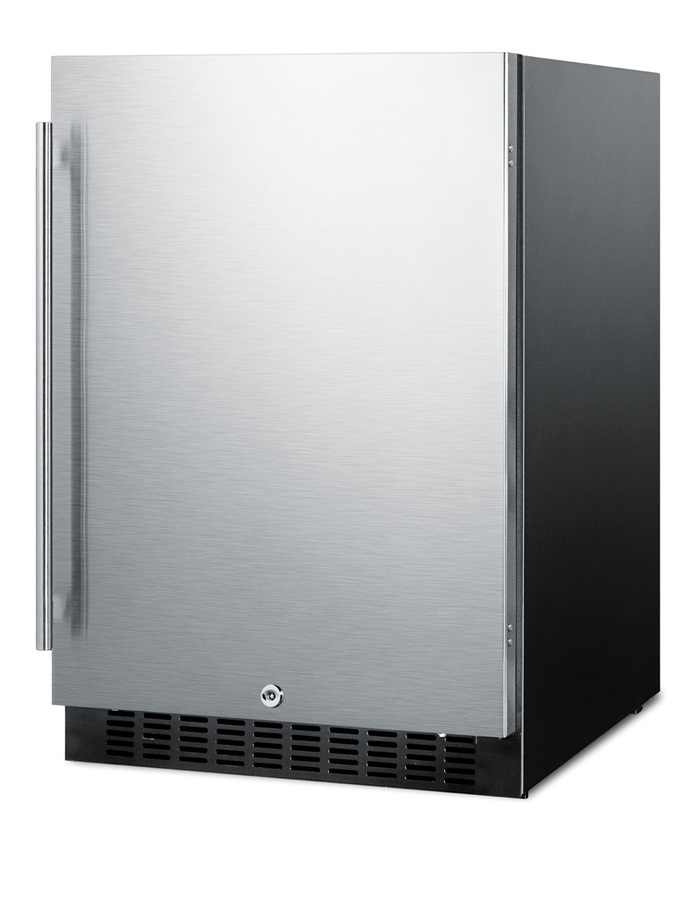 SUMMIT's FF64B Series brings quality and convenience under the counter with a fully featured lineup of built-in all-refrigerators. Sized with a convenient 24" footprint, the FF64BCSS refrigerator can be used built-in or freestanding. It has a stainless steel wrapped cabinet. The reversible stainless steel door includes a factory installed lock and a professional style handle. Inside, the FF64BCSS utilizes frost-free operation with fan-forced cooling to ensure low maintenance and even temperature distribution. Recessed LED lighting offers an attractive yet efficient look. The digital thermostat makes it easy to manage the interior temperature. This unit includes adjustable glass shelves for flexible and spill-proof storage. The floor is specially slotted to hold bottles in place. Additional features include an open door alarm, high temperature alarm, and Sabbath mode setting that lets you disable some of the electrical elements during periods of observance. The FF64BCSS refrigerator is ENERGY STAR certified as a commercial refrigerator. It also meets DOE standards for residential applications, using 20% less energy than the maximum allowed for this product class and capacity. With its deluxe style and user-friendly features, this unit is the perfect choice for home or commercial kitchens. For a matching frost-free all-freezer, see the SCFF53BCSS.