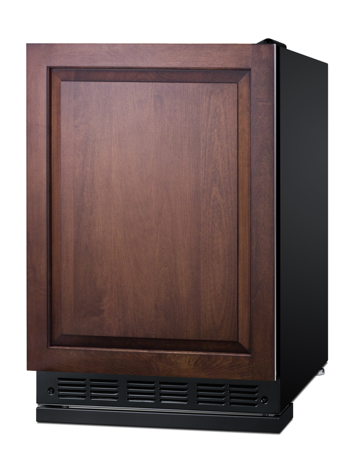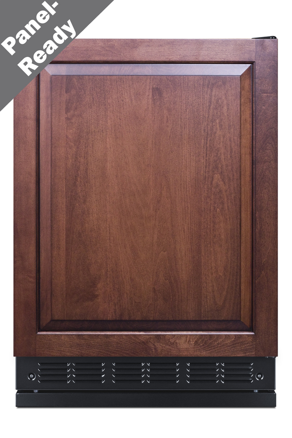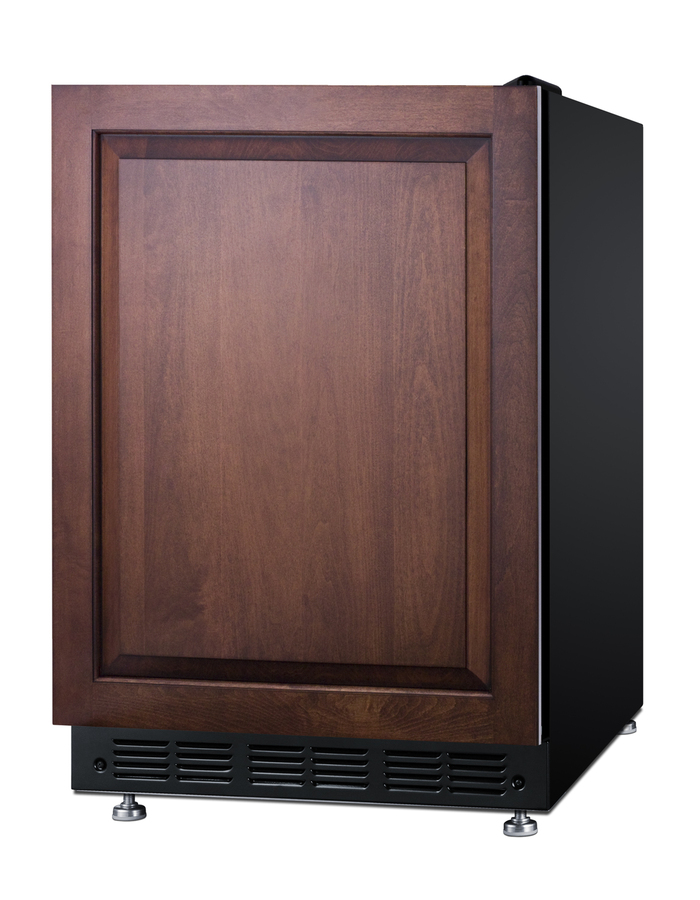 Summit's undercounter lineup of European-made refrigeration features counter height choices that offer the largest capacity in the industry. Sized with a 24" footprint, model FF708BLSSRSIF is an ENERGY STAR certified all-refrigerator designed recessed installation or freestanding use in residential kitchens. The door features an integrated stainless steel exterior frame designed to accept overlay panels, allowing you to create a custom look that can seamlessly blend into your kitchen (panel size: 23 5/16" W x 28 1/4" H and at least 3/4" thick). Users provide their own handle to complete the look. This unit has a jet black exterior cabinet and runs quietly at less than 33 dB. Adjustable legs allow you to set the height between 33 1/2" and 34 1/2" for the perfect fit. We include a black steel leg shield for optional use if you find there is too much space between the front and floor when the unit is set at its taller height. With a full 5.3 cu.ft. interior, the FF708BLSSRSIF offers a higher storage capacity than most counter height units in the market. It features a black interior liner, with an interior light that works off an on/off rocker switch inside. The adjustable glass shelves allow versatile spill-proof storage. We also include a removable scalloped steel rack ideal for holding bottles in a horizontal position. A large clear crisper makes it easy to store produce at its best. This unit comes with a flat interior door liner, allowing you to store deeper items (sized up to 19 1/2" x 15 1/2") that might not otherwise fit with door racks. Summit's European lineup features classic mechanical controls. The dial thermostat ensures an intuitive, trouble-free performance without any internal boards or chips. Automatic defrost reduces user maintenance and our signature cold wall design creates an efficient, reliable cooling system. The FF708BLSSRSIF is UL listed for residential use. With its large capacity, professional finish, and user-friendly features, this freezerless refrigerator is a convenient option for homes, offices, schools, and other settings in need of reliable cold storage. Additional choices are available in lower ADA height, as well as with freezer compartments (model CT66BK2SSRSIF). Browse the full Summit catalog to discover the perfect appliance for your refrigeration needs.