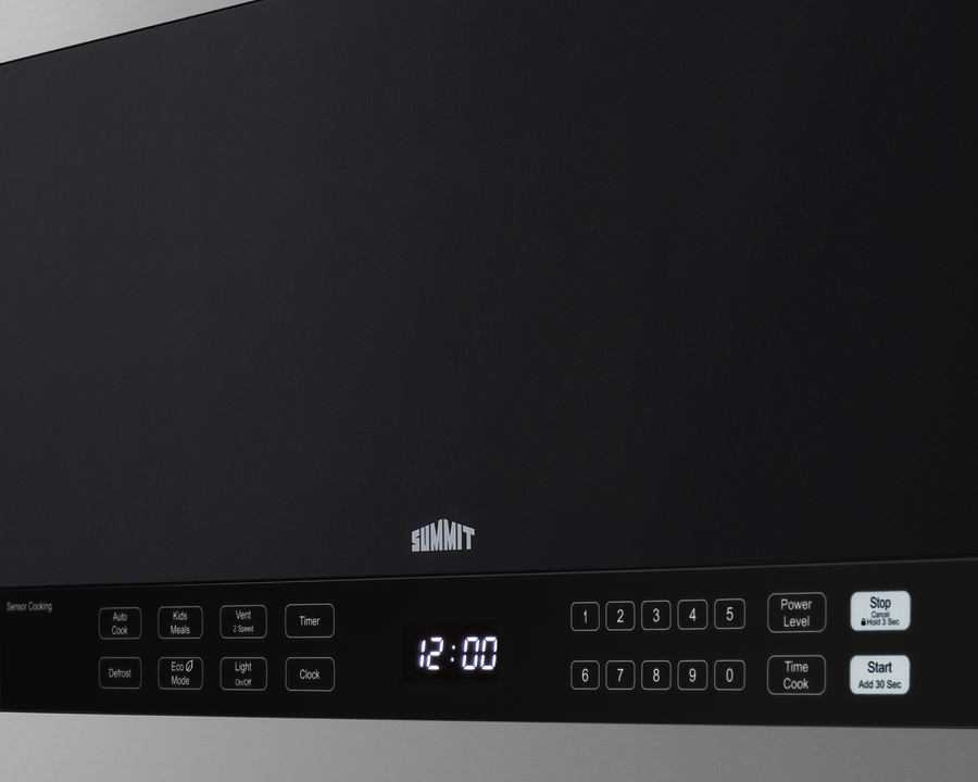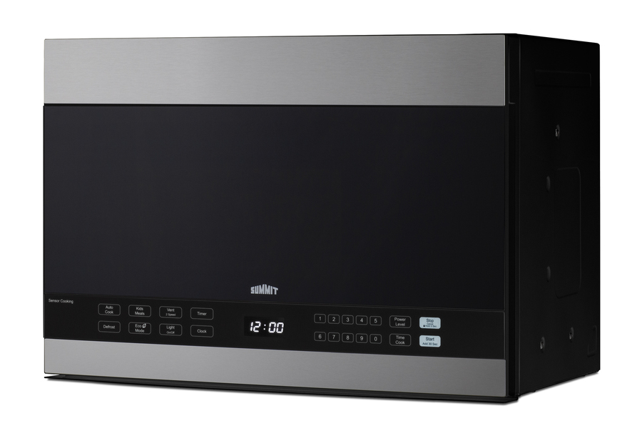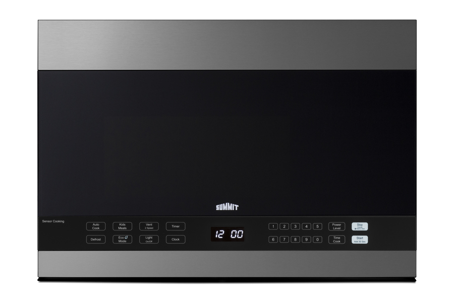 Summit's selection of microwave ovens offer complete cooking power in slim, stylish designs, ideal for smaller kitchens. The MHOTR243SS is a 24" wide over-the-range microwave designed for simple one-touch cooking and effective ventilation. Its jet black door is accented by real stainless steel trim, while a small window affords the opportunity to keep watch of your cooking. A side pocket handle offers a more streamlined look to complement any kitchen style. Inside, the MHOTR243SS offers a full 1.4 cu.ft. capacity with an oversized 12.75" glass turntable. Ten power levels and multi-stage cooking options allow you to set the proper conditions for virtually every meal. The auto cook feature makes for convenient cooking and reheating for almost any food or beverage with pre-programmed settings for pizza, popcorn, beverages, cheeses, ice cream, butter, meats, veggies, and reheating. Submenus for meats, reheat, and veggies allow users to select by item, such as pork, chicken, casserole, dinner plate, or fresh and frozen veggies. An auto cooking decal is affixed to the lower cabinet interior for easy reference. The kids meal setting lets you heat common meals such as chicken nuggets, hot dogs, fries, and frozen sandwiches. Defrost settings offer the choice of heating by time or weight, while the Add 30 seconds feature provides additional cook time for user convenience. The MHOTR243SS also includes a time cook function, timer, and interior light for easy viewing of the interior. The MHOTR243SS is equipped with a versatile ventilation system that can be set up with a vertical duct, horizontal duct, or for recirculating (ductless) operation with two grease filters and a charcoal filter included. A two-speed exhaust fan, which begins automatically, assures a smoke and odor-free environment. Two LED lights offer efficient illumination for your cooking surface, while the child lock feature helps prevent unsupervised use by children for added safety. Eco Mode disables the display, outside lamp, and exhaust fan for power saving convenience; it is automatically turned on after one minute of inactivity or can be manually turned on or off by the user. We include a mounting plate, exhaust adapter for top or rear-venting, and the hardware required for installation, along with an installation booklet and a top cabinet and rear wall template. NOTE: This unit features a top vented system that must be clear for adequate ventilation. The depth from the rear to the vented area is 17". With its range of cooking options and convenient size, the MHOTR243SS is the perfect finish for any small kitchen space. This unit is also available in white (see MHOTR241W) or black (see MHOTR242B). Visit www.summitappliance.com to learn more. NOTE: If using this for recirculating operation, be sure to consult the installation instructions and rotate the motor before installing in your cabinet.