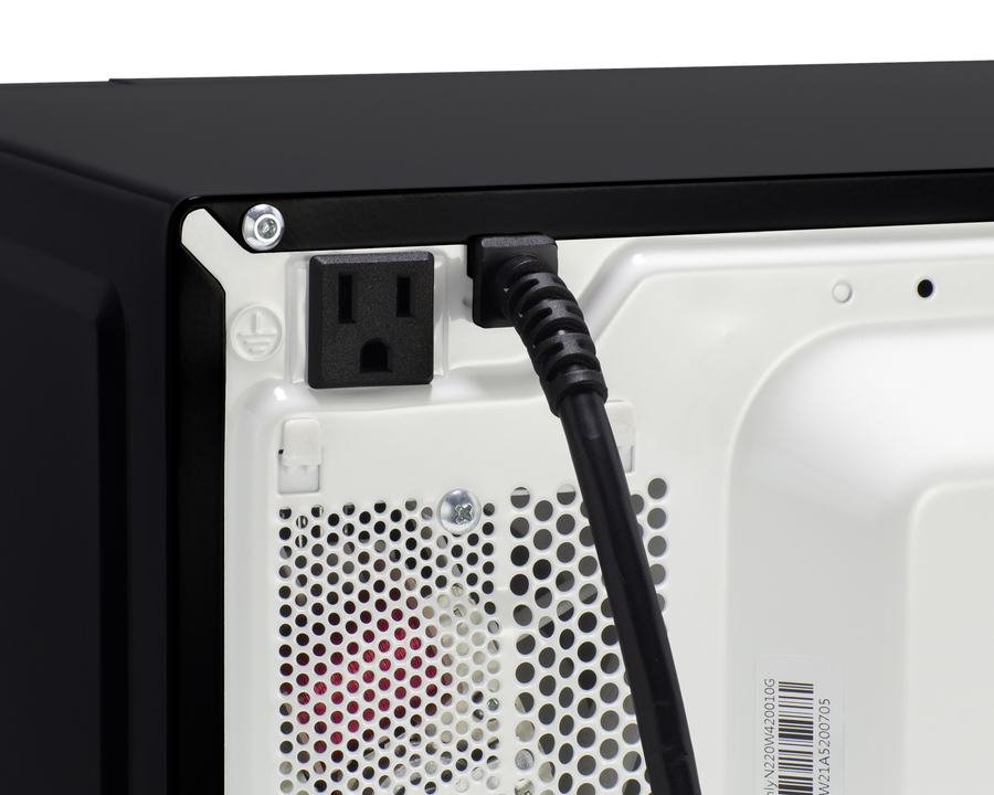 Plug the refrigerator into the microwave's rear outlet for easy 1-plug operation that will temporarily disable the fridge while the microwave is in use to prevent power surges