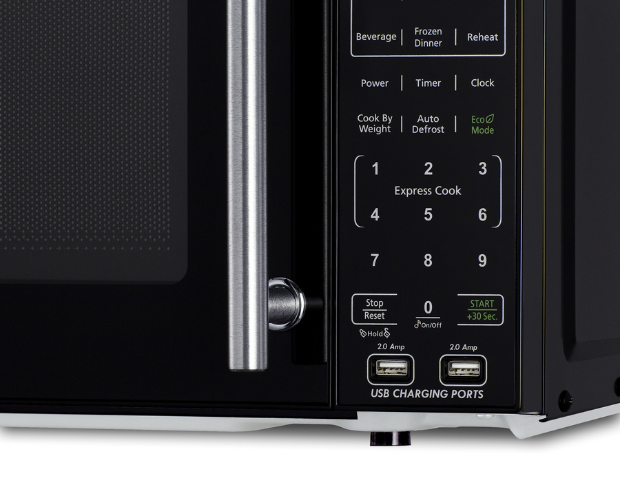 Charge your mobile devices through the pre-installed ports, located on the microwave's front for added convenience