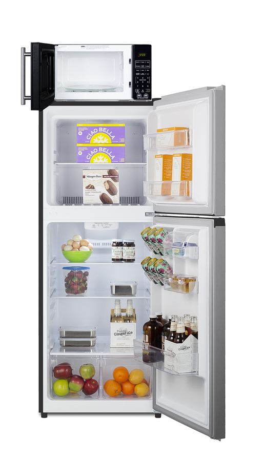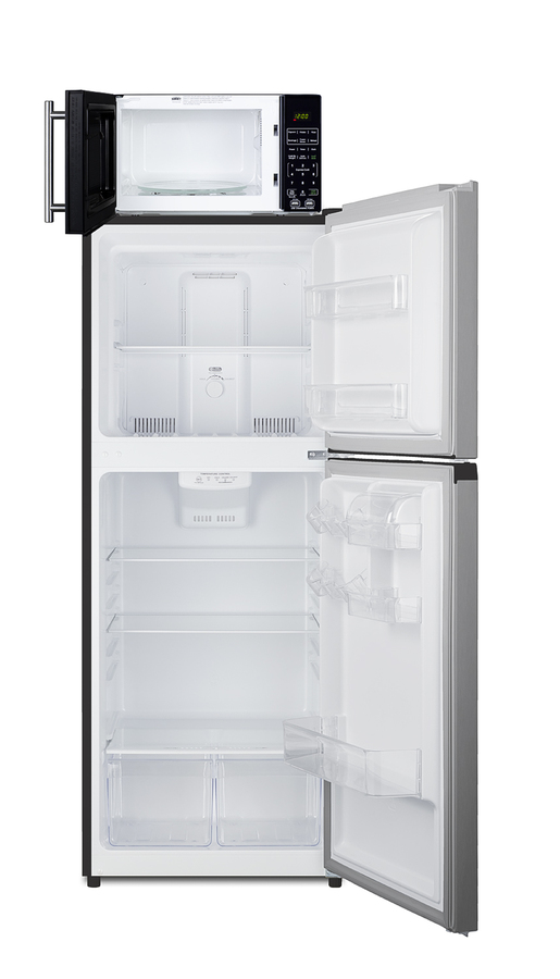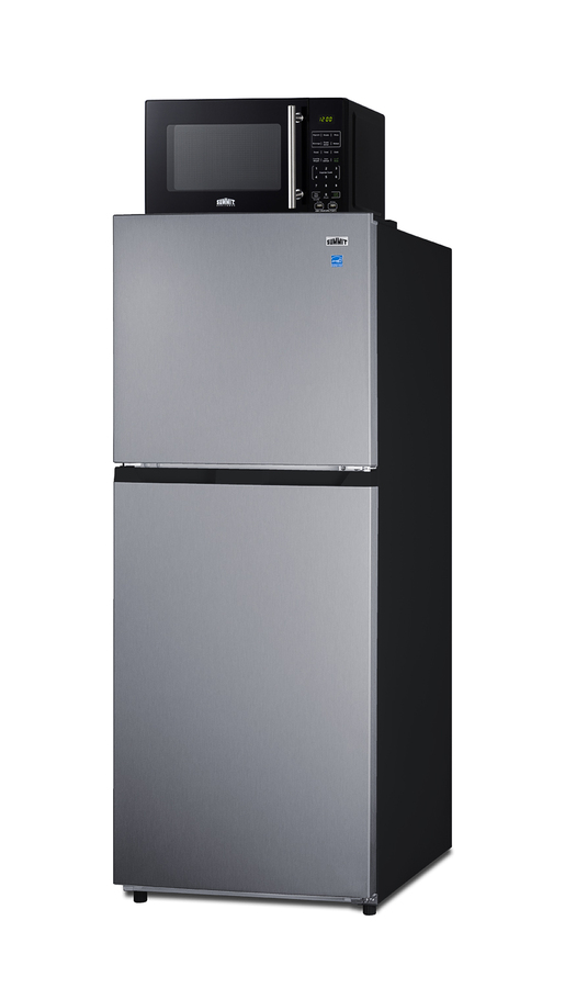 Summit's innovative MRF series offers combination refrigerator-microwaves with one-plug operation, ideal for hotels and other settings looking to maximize user convenience. Model MRF1089PLA combines a fully featured compact microwave with our frost-free 10.1 cu.ft. FF1089PL refrigerator-freezer. The FF1089PL is ENERGY STAR certified, with a jet black cabinet and user-reversible doors that come with a fingerprint-free stainless steel look. The microwave includes a built-in allocator, allowing you to plug the fridge directly into the microwave. The allocator will temporarily disable the power of the refrigerator while the microwave is in use, resuming after the cooking cycle is complete in order to protect against power surges. The SM903BSA1 microwave comes in a jet black finish with an easy-grab handle in brushed stainless steel. Two USB ports are included to charge mobile devices. The microwave has a door window and digital touchpad control panel with one-touch settings for common meals, including frozen food, potatoes, pizza, and popcorn. We include two brackets that let you set the microwave on top of the refrigerator and gently secure with included adhesive strips. The MRF1089PLA ships on one pallet in three boxes (refrigerator-freezer FF1089pl, microwave SM903BSA1, and our MRFKit bracket set). If you prefer to have the unit fully assembled before shipping, add option "MRFAssembly" upon order (note: this will incur an additional charge and added lead time). Alternate combinations can be created by ordering your choice of a Summit refrigerator, the SM903BSA1 microwave, and our MRFKit. For more information, contact our product specialists at 718-893-3900 ext. 507.