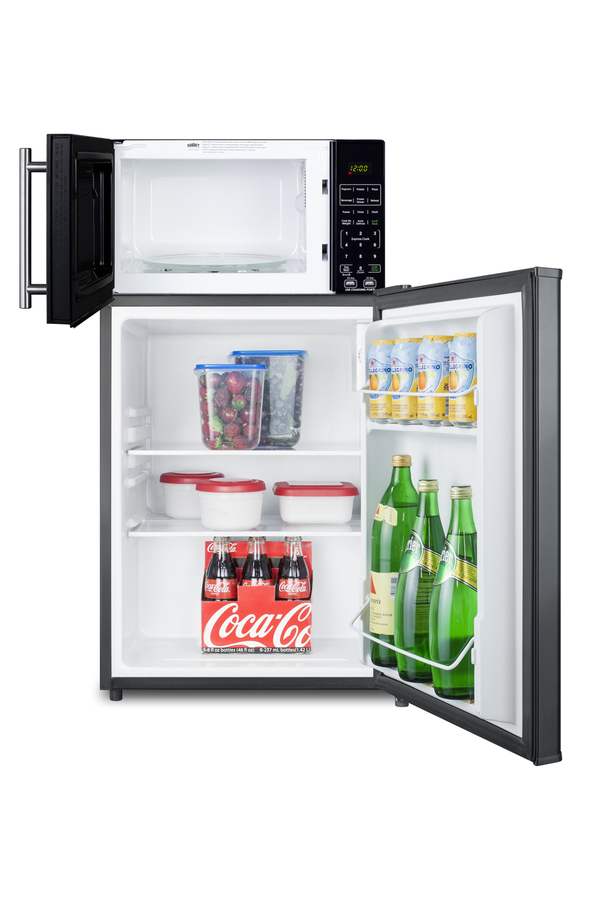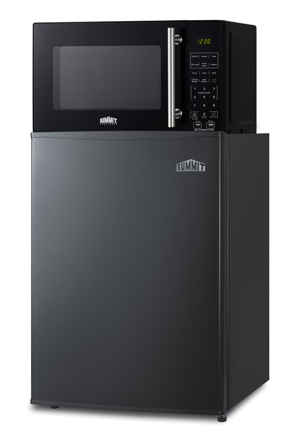 Summit's innovative MRF series offers combination refrigerator-microwaves with one-plug operation, ideal for hotels and other settings looking to maximize user convenience. Model MRF29KA combines a fully featured compact microwave with our popular compact FF29K auto defrost all-refrigerator. The complete unit is sized at just under 19" wide for an easy fit. The refrigerator's reversible door make it easy to adjust to any setting, while the microwave includes a built-in allocator, allowing you to plug the fridge directly into the microwave. The allocator will temporarily disable the power of the refrigerator while the microwave is in use, resuming after the cooking cycle is complete in order to protect against power surges. The SM903BSA1 microwave comes in a jet black finish with an easy-grab handle in brushed stainless steel to complement the refrigerator. Two USB ports are included to charge mobile devices. The microwave has a door window and digital touchpad control panel with one-touch settings for common meals, including frozen food, potatoes, pizza, and popcorn. The display and end-of-cycle alerts can be disabled and muted as needed. We include two brackets that let you set the microwave on top of the refrigerator and gently secure with included adhesive. The MRF29KA ships on one pallet in three boxes (refrigerator FF29K, microwave SM903BSA1, and our MRFKit bracket set). If you prefer to have the unit fully assembled before shipping, add option "MRFAssembly" upon order (note: this will incur an additional charge and added lead time). Alternate combinations can be created by ordering your choice of a Summit refrigerator, the SM903BSA1 microwave, and our MRFKit. For more information, contact our product specialists at 718-893-3900 ext. 507.
