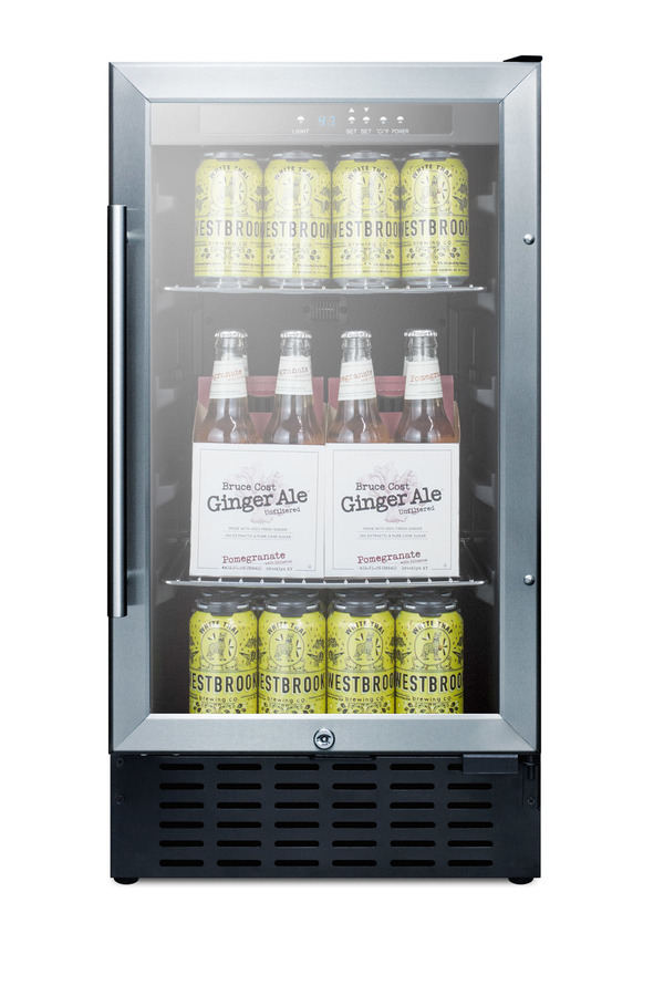 SUMMIT's selection of built-in undercounter beverage coolers combines user-friendly convenience with elegant style for an ideal fit in any setting. The SCR1841B is an 18" wide all-refrigerator designed for use in residential settings. The front-breathing system allows built-in installation under counters, while the fully finished black cabinet also allows freestanding use. This unit includes a user-reversible stainless steel trimmed door triple pane glass door, with a factory installed lock and professional style handle. Items can be stored on four adjustable chromes shelves in the auto defrost interior, with attractive LED lighting providing an elegant display. The digital thermostat offers intuitive temperature management. The SCR1841B is also available in a 32" height for use in ADA compliant settings (see the SCR1841BADA) and can be paired with our matching wine cellar, model SWC1840B. In addition to this unit, Summit offers a full collection of 18" wide undercounter choices, including single and dual zone wine cellars, refrigerators, and frost-freezers. Browse our website for more.