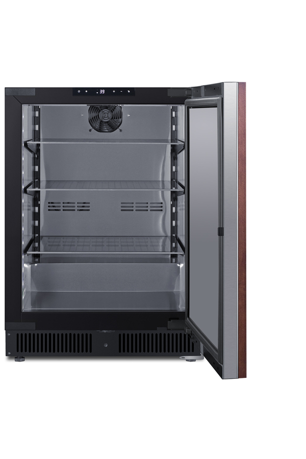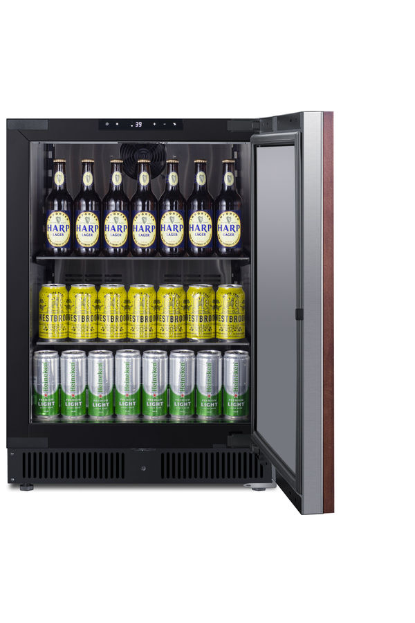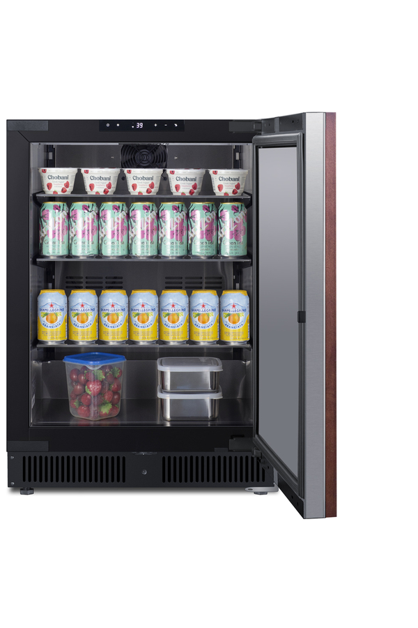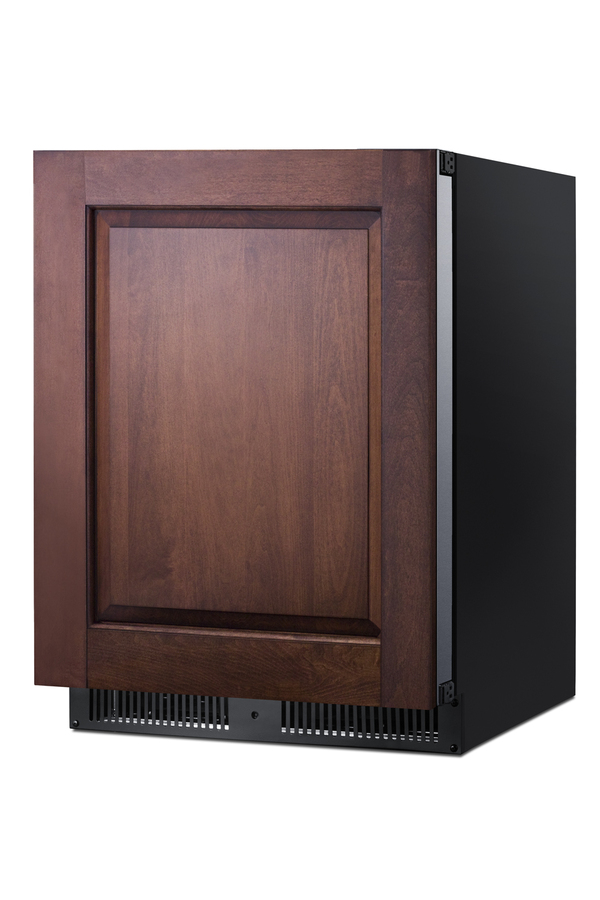 Summit manufactures a wide selection of premium refrigeration designed to bring style and function under the counter. The SCR610BLSDIF comes in an easy-fitting 24" footprint, with a front-breathing design that can be built-in under counters or used freestanding. The door features a fully articulating European style hinge and bracket kit for easy installation of full overlay panels. This lets you blend the unit into your cabinetry design for a seamless look. A digital thermostat allows precise temperature management. Inside, the SCR610BLSDIF utilizes low maintenance automatic defrost operation with an internal fan to ensure even temperature distribution. Recessed LED lighting offers the perfect display conditions inside the durable and easy-to-clean stainless steel interior. This unit includes three cantilevered chrome shelves to ensure flexible storage that accommodates any item size. The interior is taller than many refrigerators in its class, allowing the unit to easily store two rows of 12" high bottles. High temperature and open door alarms offer added protection for stored items. Variations of this model are available with glass or stainless steel doors, as well as choices in slimmer widths and ADA compliant height. Browse the complete selection to discover the perfect refrigeration choice for your space.