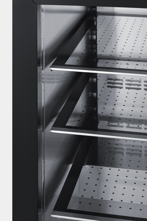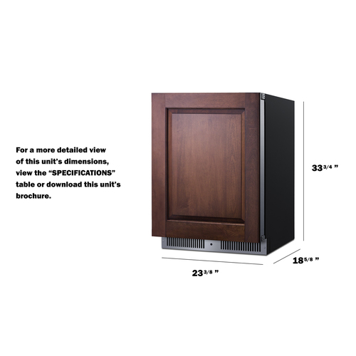 Summit's shallow-depth series of built-in undercounter refrigeration brings full functionality to kitchen islands, wet bars, and other settings with space limitations. The SDHR2444PNR is a 24" wide all-refrigerator sized under 18" deep. It comes in a 34" height to fit standard undercounter spaces. The front-breathing system allows built-in installation, while the fully finished black cabinet also allows freestanding use. This unit has a sealed rear and right angle cord for a better fit. A lock is located in the kickplate for added security. The stainless steel wrapped door features our fully articulating European hinge. We include a 2-piece bracket kit that allows easy installation of overlay panels to create a custom look that can blend into your existing cabinetry design. The user-reversible door swing allows easy adjustment as needed. Inside, the unit features stainless steel construction for improved durability and sanitation. Fan-forced cooling ensures even temperature distribution and fast temperature recovery. Recessed LED lighting offers an attractive yet efficient look. The digital thermostat makes it easy to manage the interior temperature. This unit includes a cantilevered shelving system with glass shelves for flexible storage. Additional features include an open door alarm, high-temperature alarm, and Sabbath mode setting that lets you disable some of the electrical elements during observance periods for up to 96 hours. With its deluxe style, user-friendly features, and uniquely shallow depth, this unit offers premium value for a variety of settings. Alternative 18" deep choices are available in 15", 19", and 24" widths, including outdoor refrigerators, refrigerator drawers, and more.