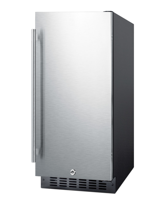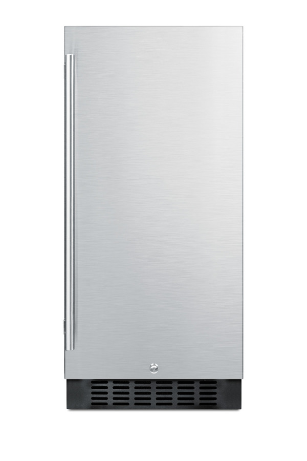 SUMMIT SPR316OS is a versatile all-refrigerator designed for use in residential or commercial outdoor kitchens. At just 15" wide, the SPR316OS is ideally sized for built-in installation in any outdoor kitchen, with a fully finished cabinet that also allows freestanding use. The reversible stainless steel door includes a 20" long handle for a professional look and a factory installed lock for added security. Inside, the SPR316OS offers 3 cu.ft. of storage space. Three adjustable glass shelves allow easy storage while the floor features slots carefully sized to hold wine bottles in place. The door includes two racks for keeping condiments and beverages in easy reach. This unit includes a digital thermostat with interior controls and recessed LED lighting. Frost-free operation ensures low maintenance, while the integrated GFCI cord offers added protection in the outdoors. Sized to fit and designed for convenience, the SPR316OS makes an ideal addition to any outdoor kitchen space. This model is ETL-S listed to NSF-7 standards for commercial use.