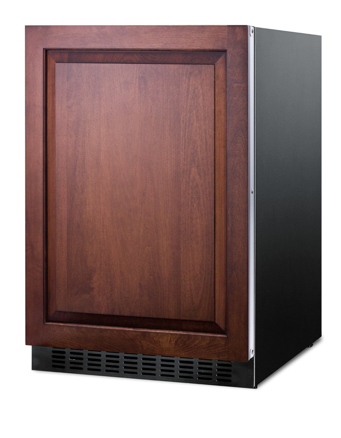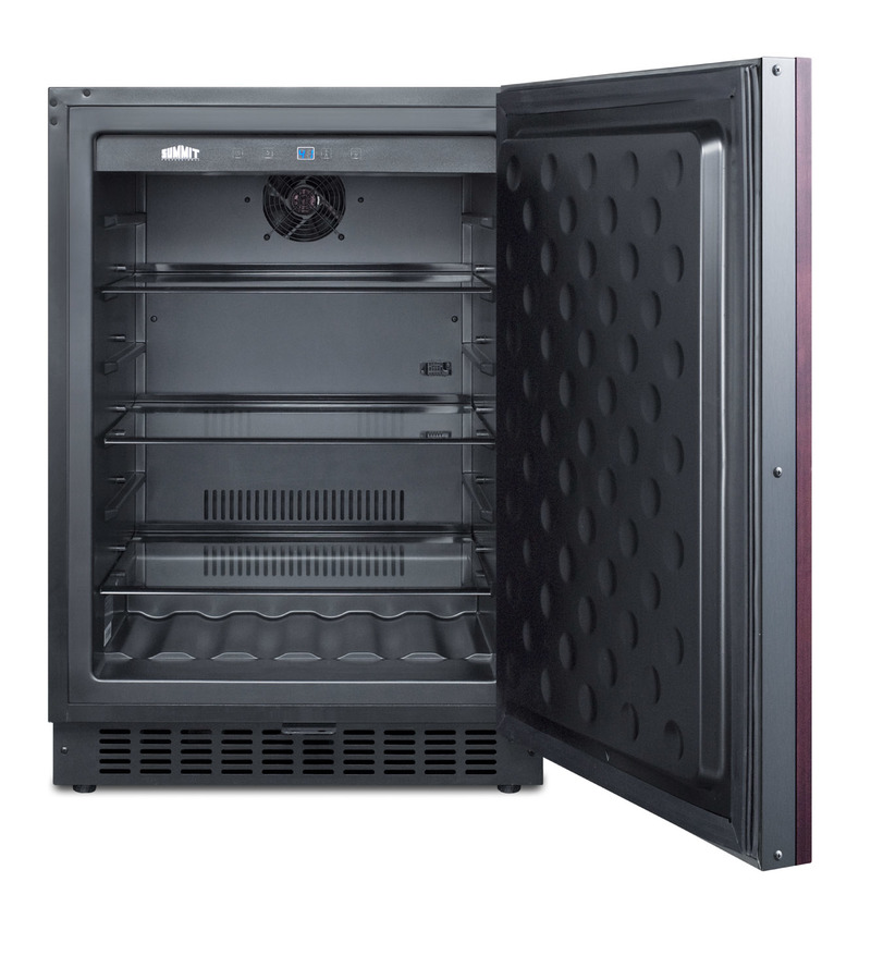 SUMMIT's SPR627OS Series features built-in all-refrigerators equipped with user-friendly features for convenient use in any outdoor kitchen. The SPR627OSIF is a 24" wide all-refrigerator that can be used built-in or freestanding in any outdoor or indoor location. The door features an integrated stainless steel frame designed to accept overlay panels, allowing you to create a customized look that can seamlessly blend in with your own cabinetry design. Users provide their own handles to complete the custom look. NOTE: If installing the unit outdoors, be sure to use a weatherproof panel and handle. Inside, this frost-free refrigerator includes an internal fan for an evenly cooled interior and a recessed LED light for an elegant yet energy efficient glow. The digital thermostat (located in the interior) allows you to adjust the temperature at the touch of a button. Adjustable glass shelves make it easy to organize the 4.6 cu.ft. interior. The floor is specially slotted to hold bottles in place. This unit has a flat door liner to accept larger trays. For optional door storage, add our SHELFKIT627. With a stunning design and convenient features, SUMMIT SPR627OSIF is the ideal finish for any outdoor or indoor kitchen. This unit is ETL-S listed to NSF-7 standards for use in commercial establishments and is ENERGY STAR certified as a commercial refrigerator. It also meets DOE standards for residential applications, using 25% less energy than the maximum allowed for this product class and capacity.